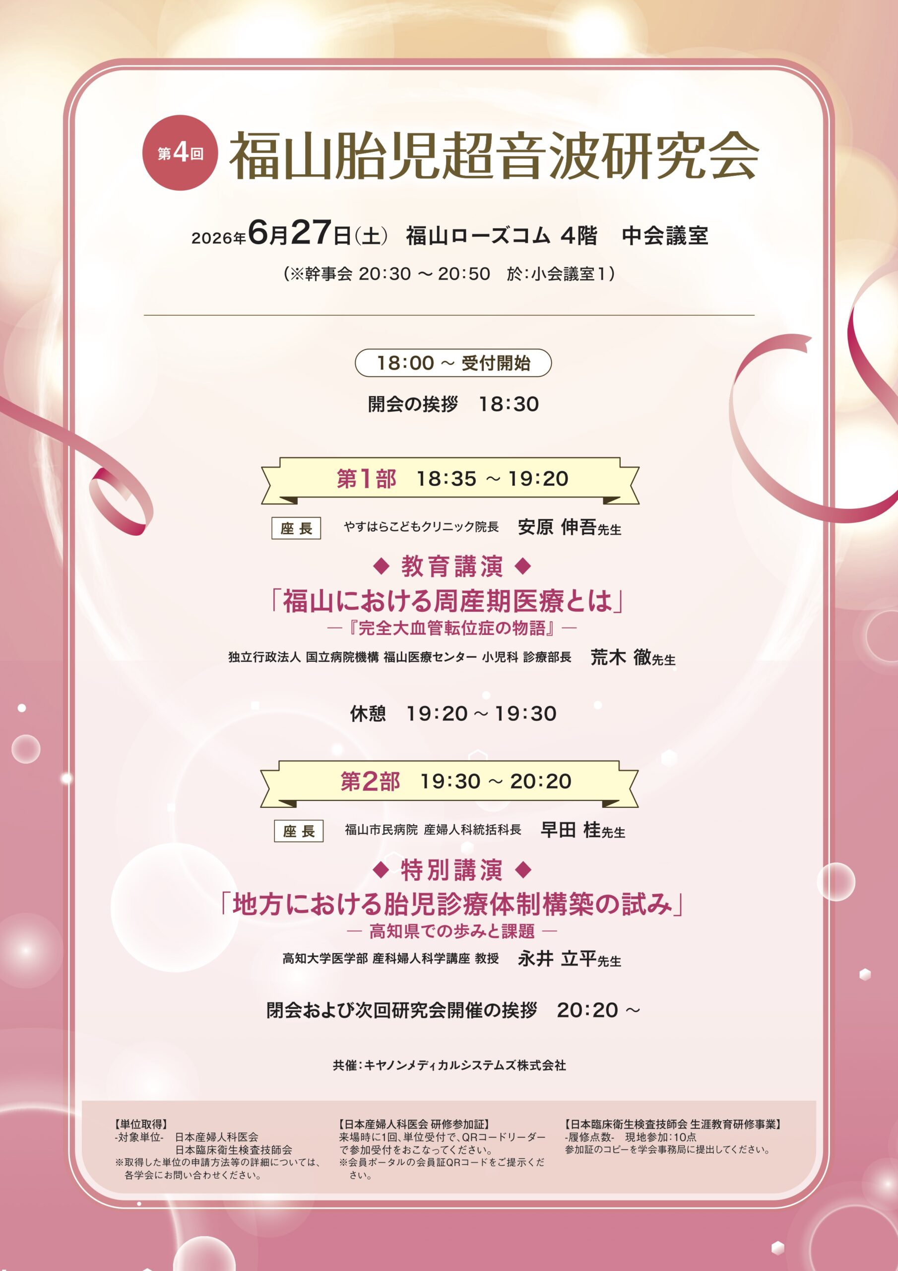 | 主催 福山胎児超音波研究会 共催 キヤノンメディカルシステムズ株式会社 |